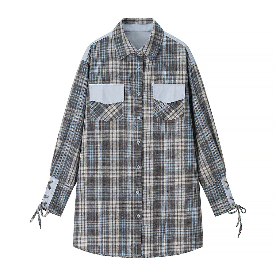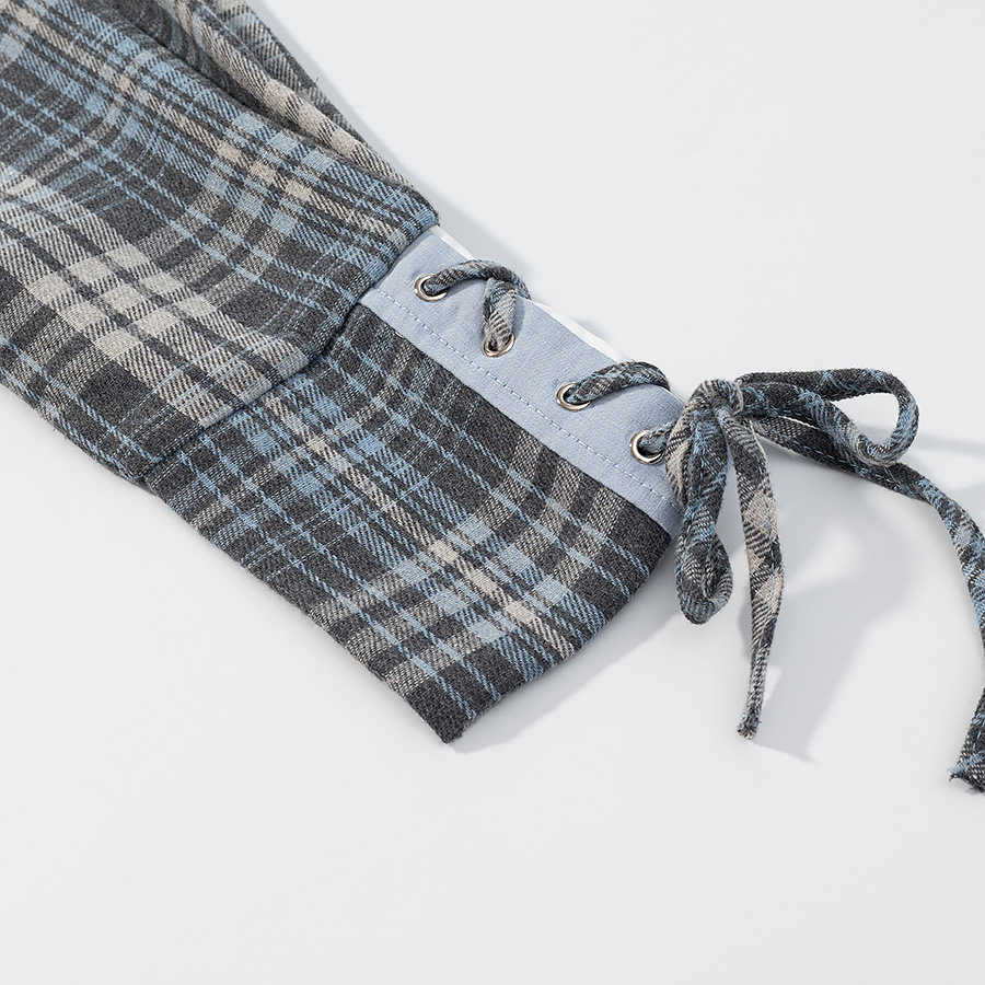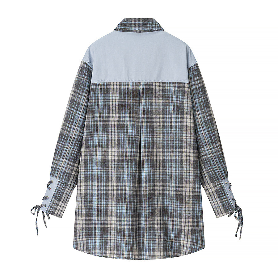 Checkered shirt+short skirt two-piece set