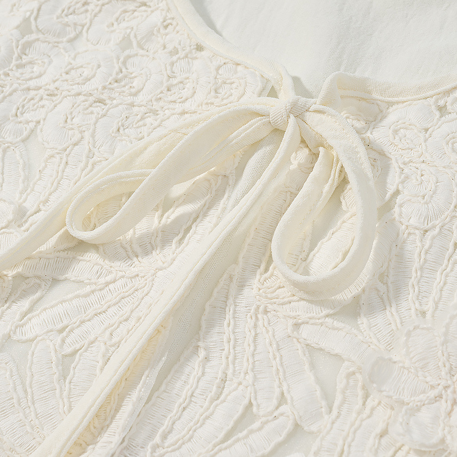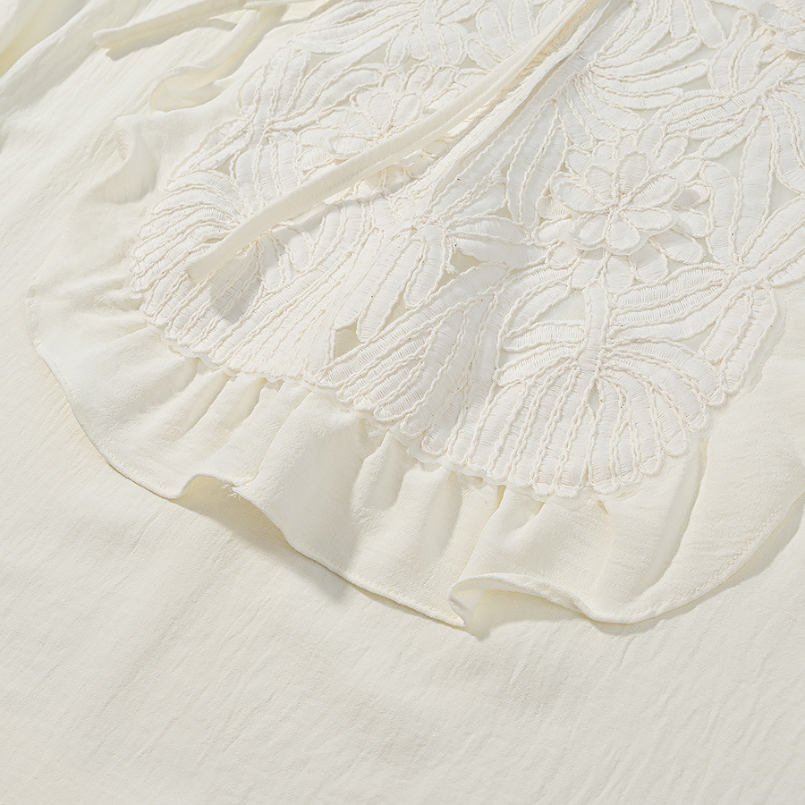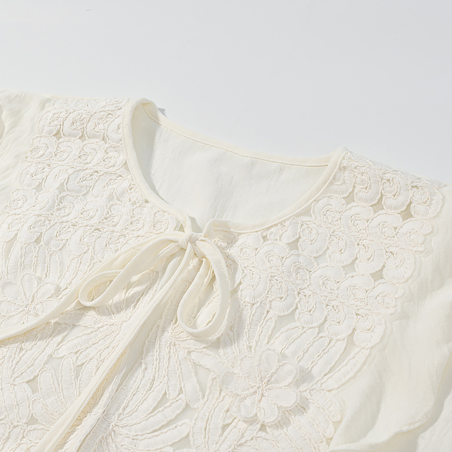 Lace patchwork lace up shirt+short skirt set