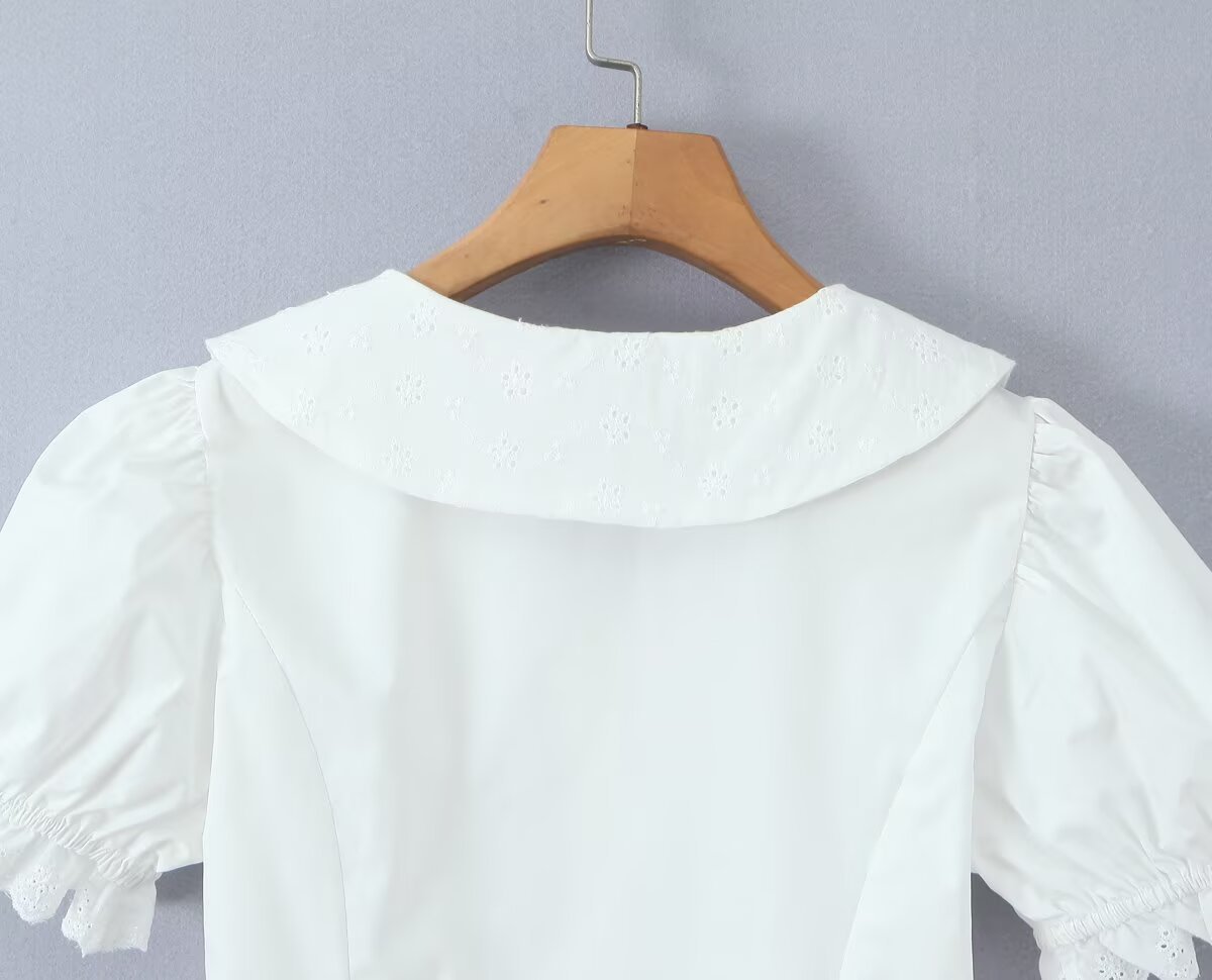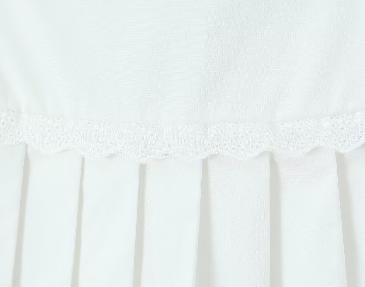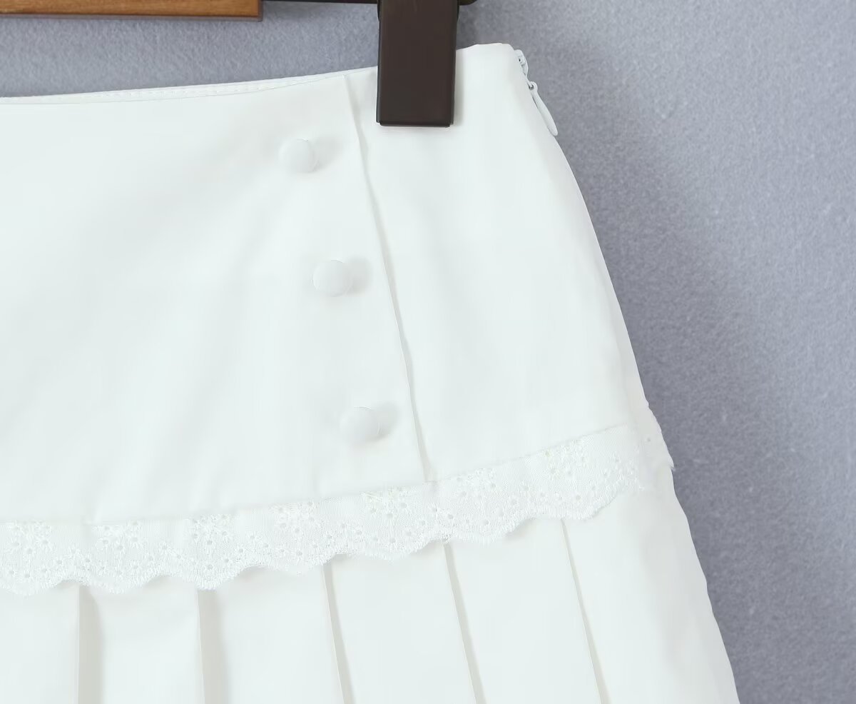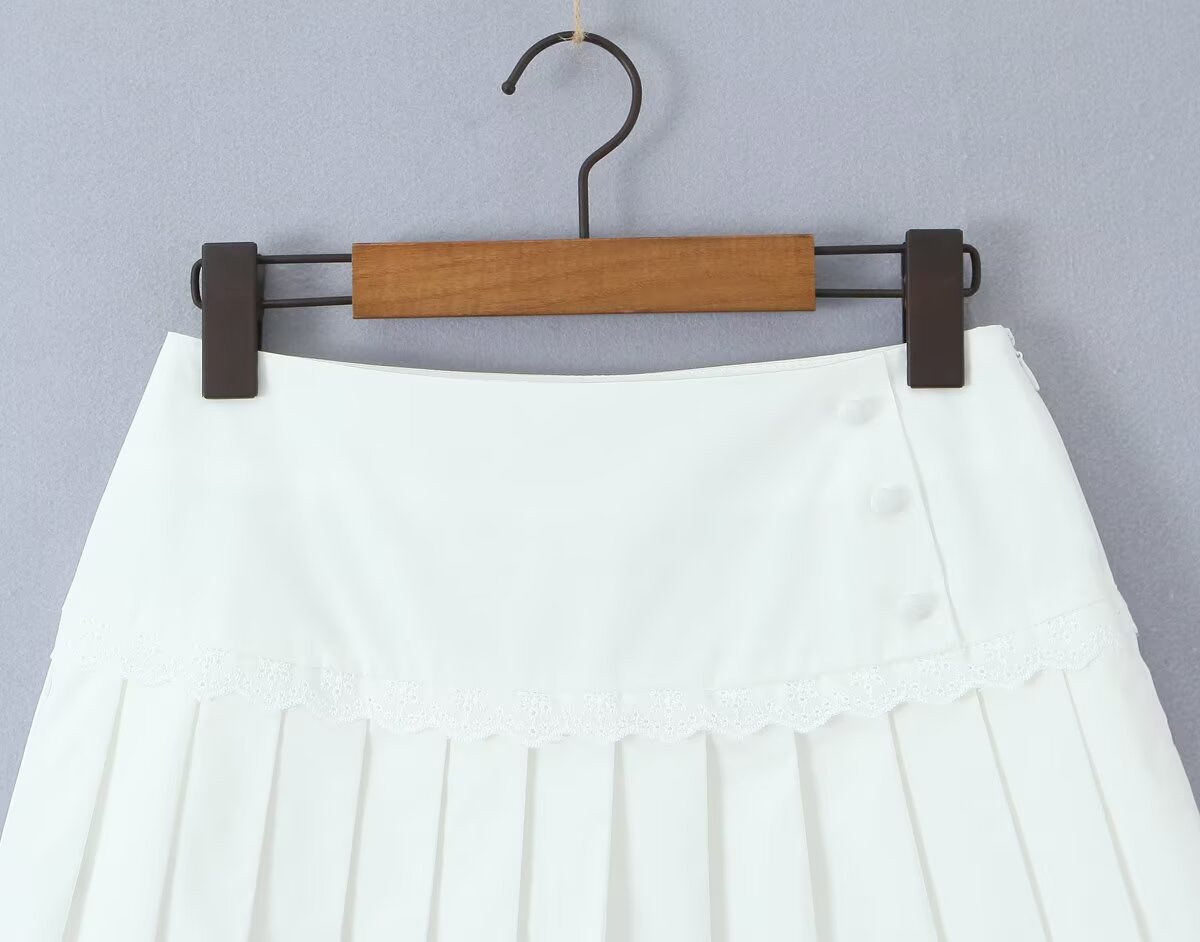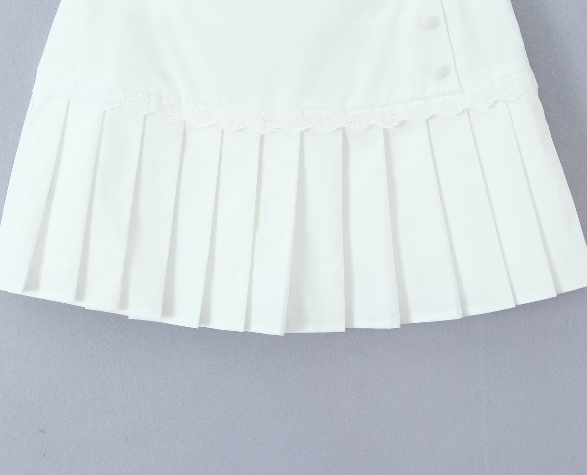 Women's New Fashion Ruffled Peter Pan Collar Fitted Top with Lace Splicing Pleated Skirt
