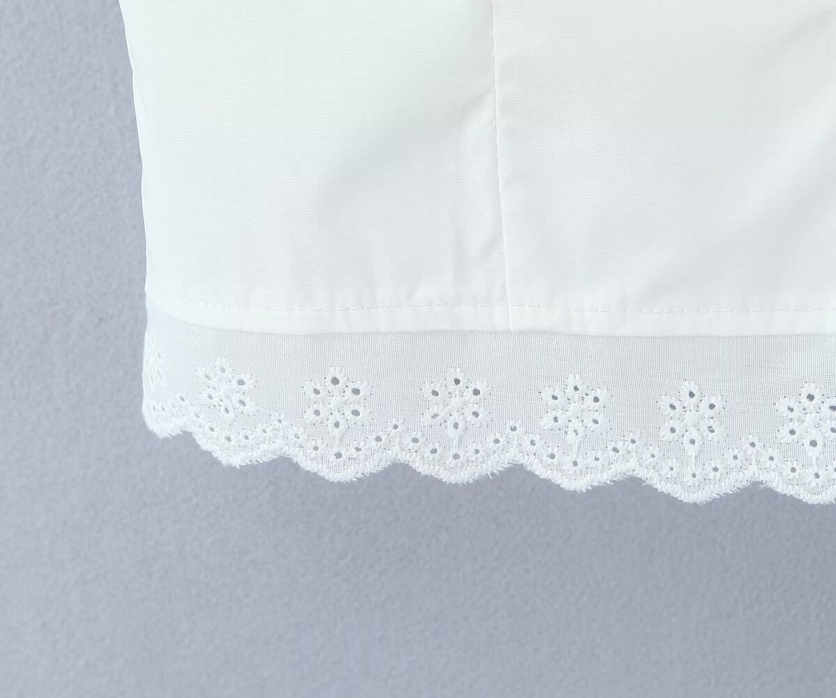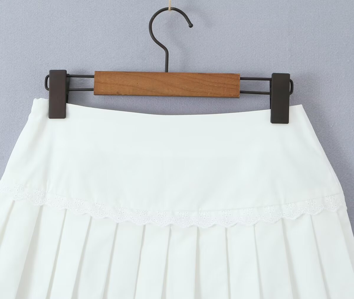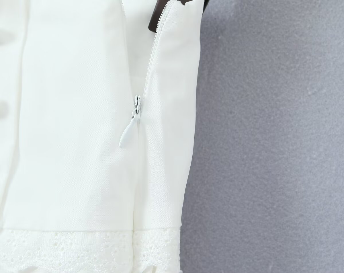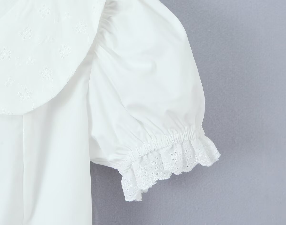 Women's New Fashion Ruffled Peter Pan Collar Fitted Top with Lace Splicing Pleated Skirt