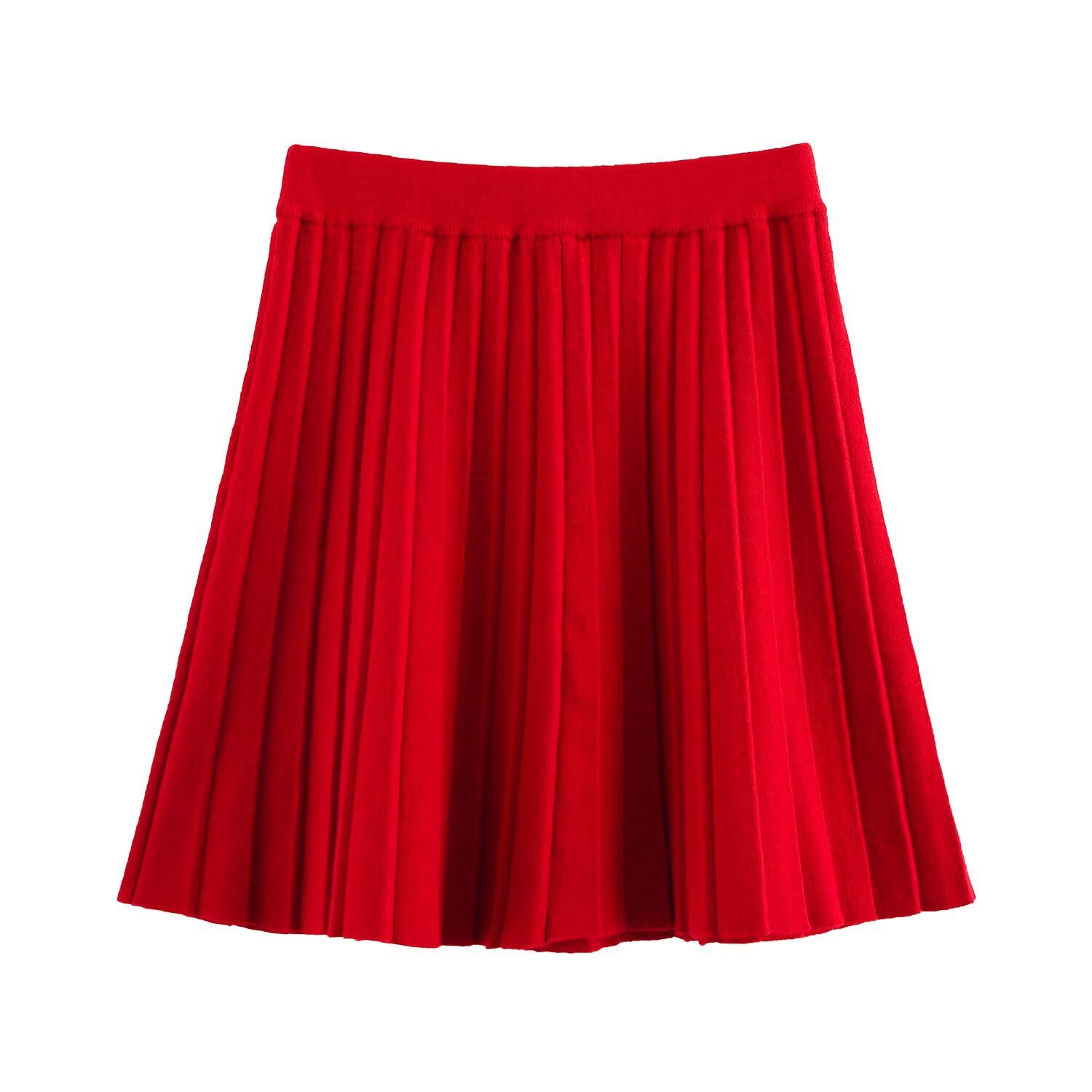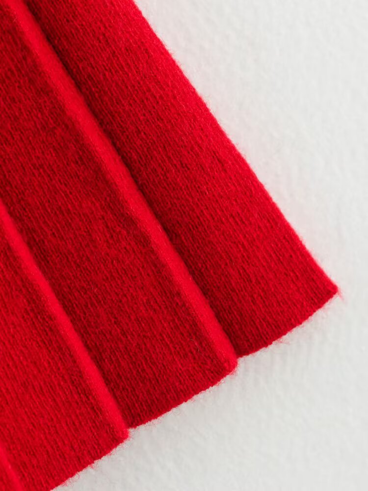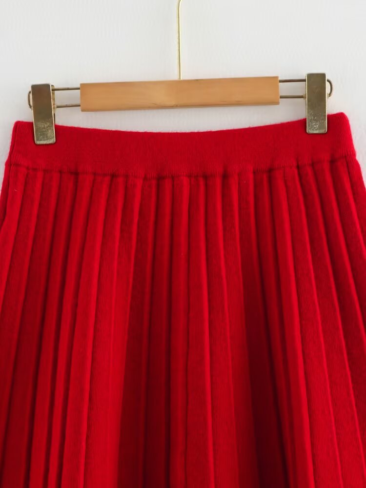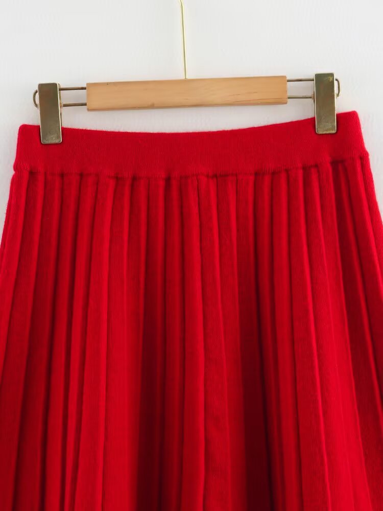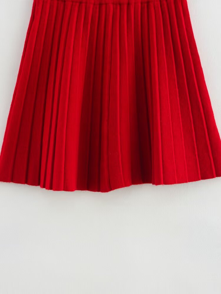 Women's Solid Color Long Sleeve Round Neck Top with Pleated Mini Skirt Knit Set